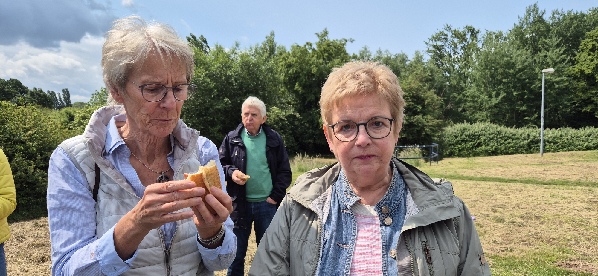 Am Ortsrand von Ramsdorf wartete auf dem wunderschön gelegenen Gelände des Schützenvereins („Bollerbüschken“) schon der Sangesfreund Werner Kerkhoff auf die Karawane der Radler. Nicht ohne Stolz zeigte er den Borkenern das großzügig geplante und gestaltete Vereinsgelände. Im Schatten einer großen Schirmschoppe ließ sich alles nieder und genoss Gespräche, Getränke und das herrliche Wetter.