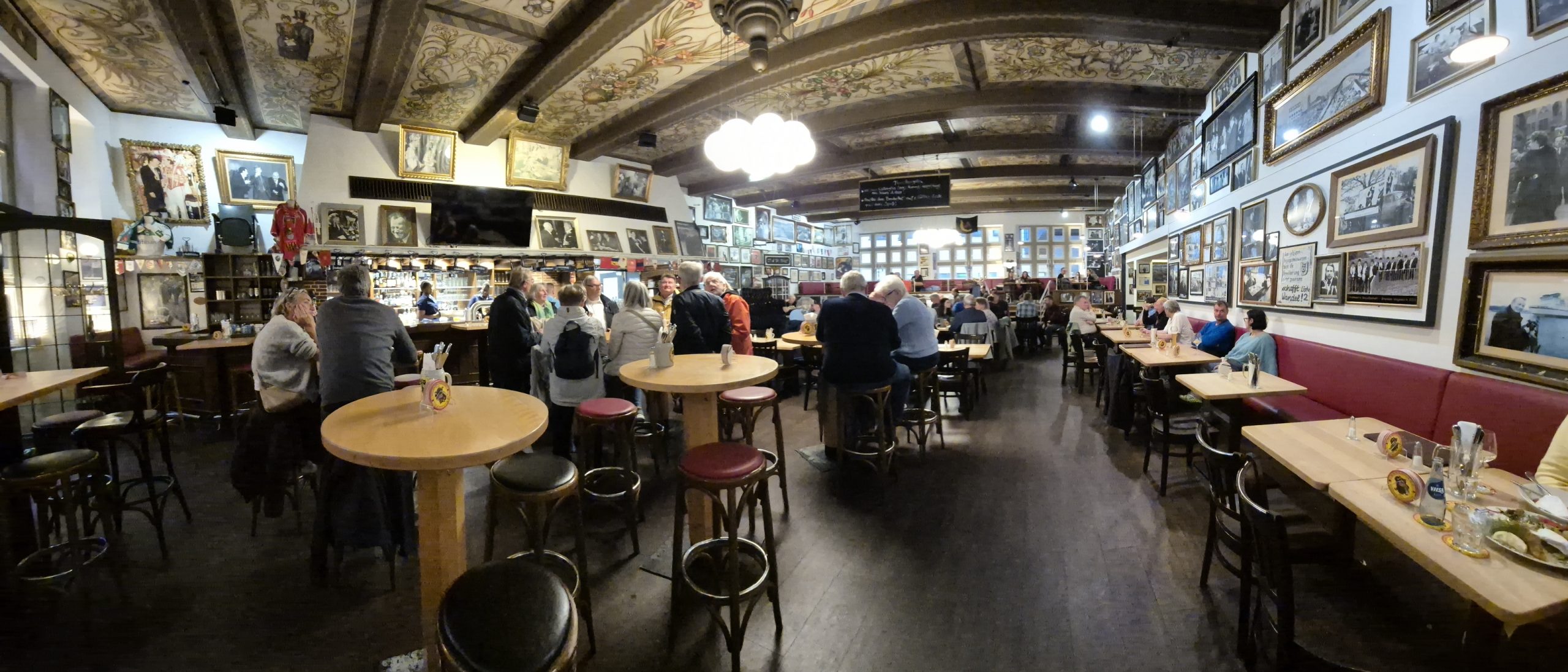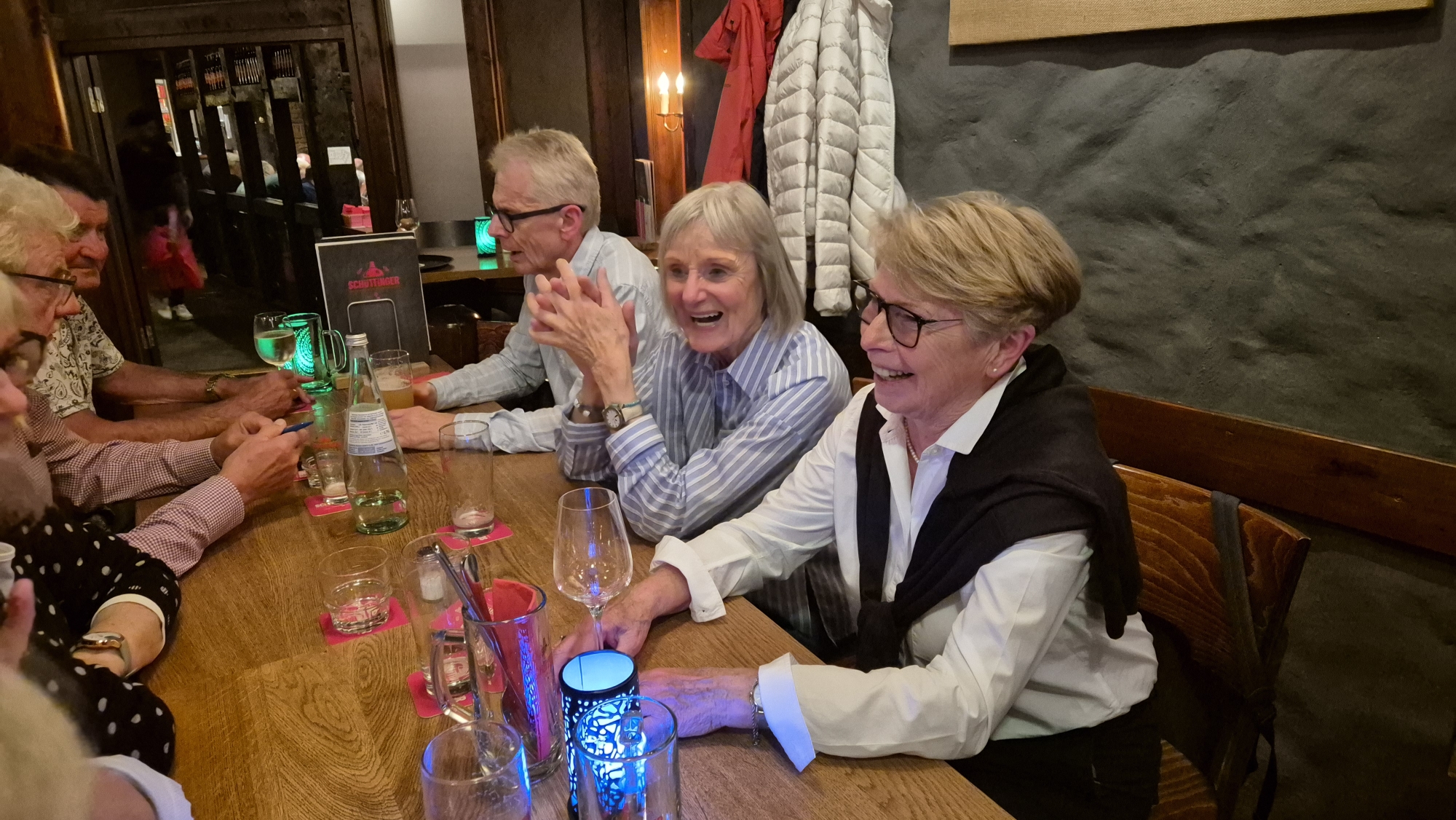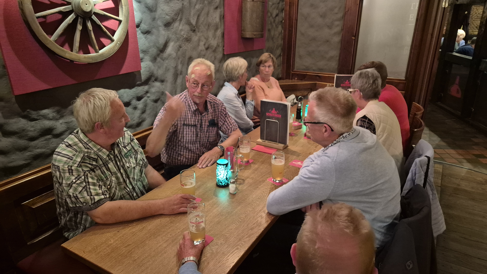 Gegen 18:00 Uhr setzte uns Busfahrer Bernd in der Altstadt ganz in der Nähe des Brauhauses und Gasthofes Schüttinger ab, wo wir in einem abgetrennten Bereich unter uns die gemütliche Atmosphäre und das vorbestellte Essen genossen. Gegen 20:00 Uhr brachte Busfahrer Bernd ein Teil von uns zurück zum Hotel, andere erkundeten die Altstadt und weitere Lokale.  Ein „harte Kern“ unserer Truppe hielt noch länger im Schüttinger aus.