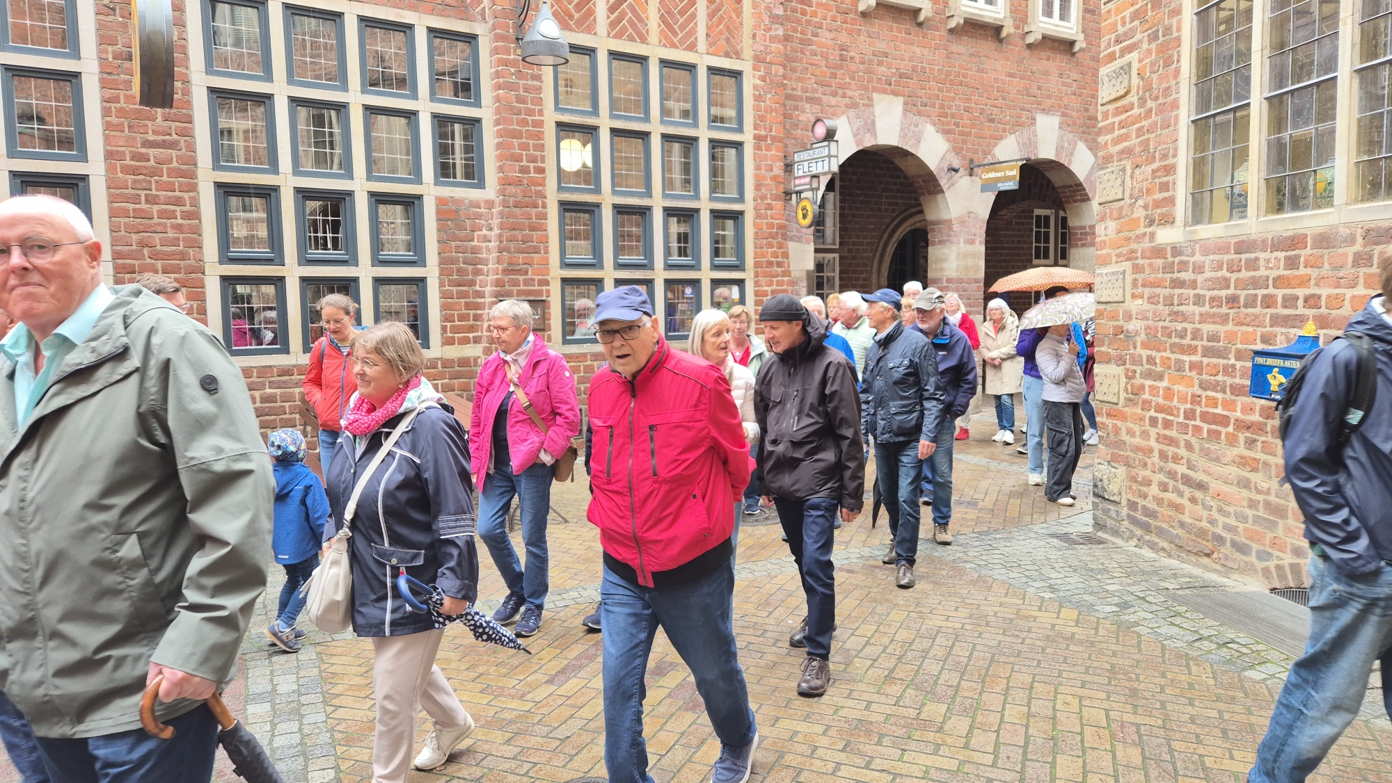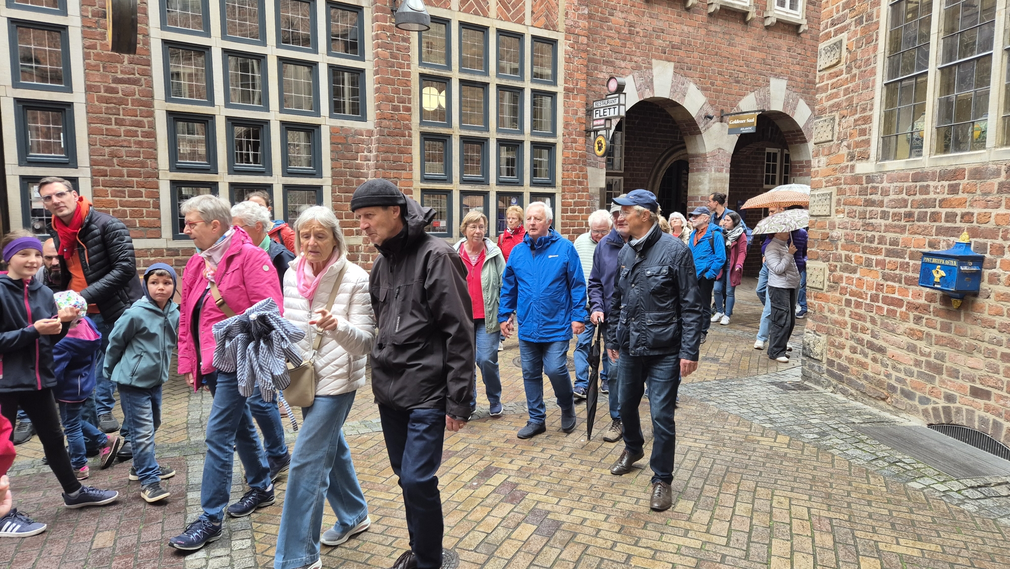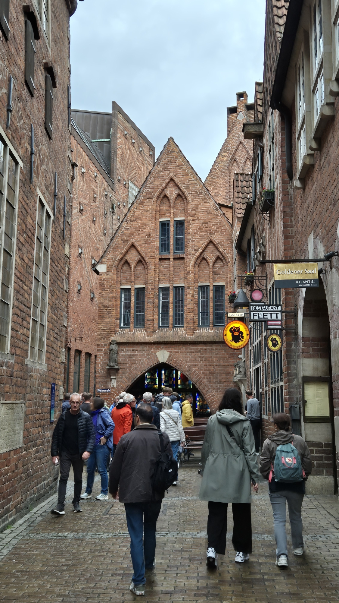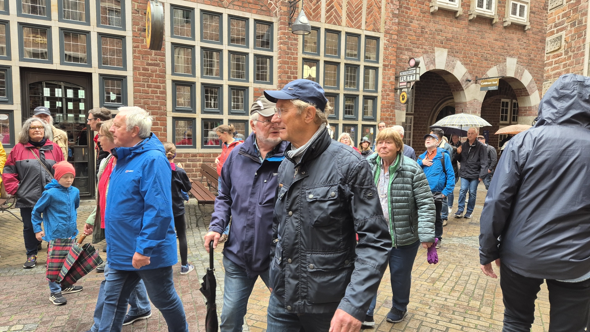 Am nächsten Morgen nach dem Frühstücksbuffet und Gepäckverladung brachte und Bernd in die Altstadt. Dort hatte jeder Gelegenheit allein oder in der Gruppe den Rathausplatz mit dem historischen Rathaus, Roland, Dom und der Skulptur der Bremer Stadtmusikanten, die Böttchergasse und das Schnoorviertel zu erkunden.