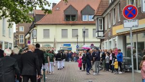 Im Anschluss marschierten wir mit den anderen Gruppen ins Festzelt und genossen in Gemeinschaft noch einige Kaltgetränke, die der Schützenverein nicht nur für uns, sondern auch für die anderen Musikgruppen und die Abordnungen der Borkener Schützenvereine bereitgestellt hatte. Ein weiteres gelungenes Kapitel kann unserer Chorgeschichte hinzugefügt werden. (L.H.)