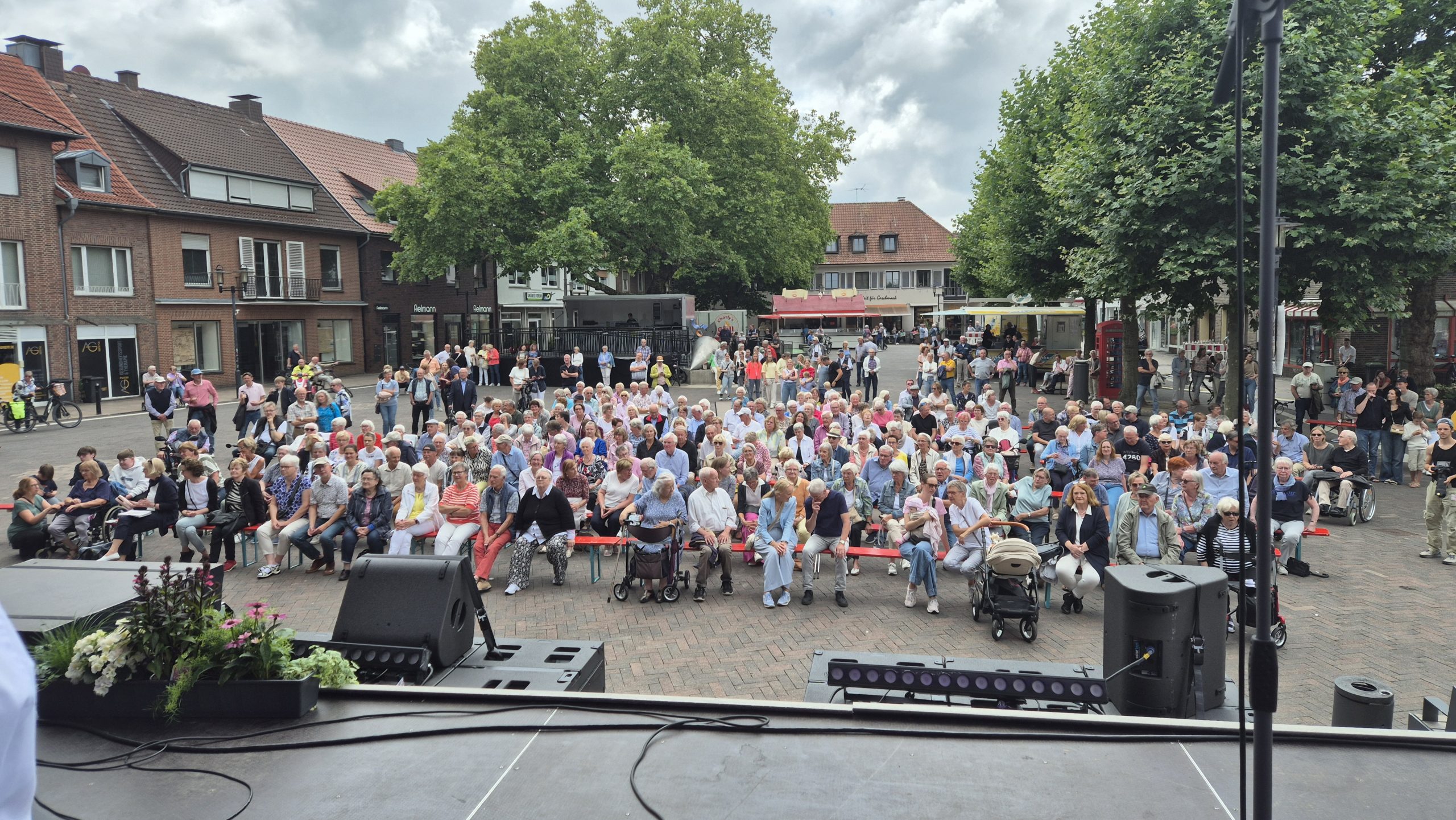 Mit dem traditionellen Abschiedslied „Dankeschön und auf Wiedersehn“ beschlossen wir unseren Freiluftauftritt auf dem Marktplatz. Hans verwies das Publikum auf unser nächstes Konzert in der Stadthalle Vennehof am 14. September, das als Kaffeehauskonzert geplant sei.
