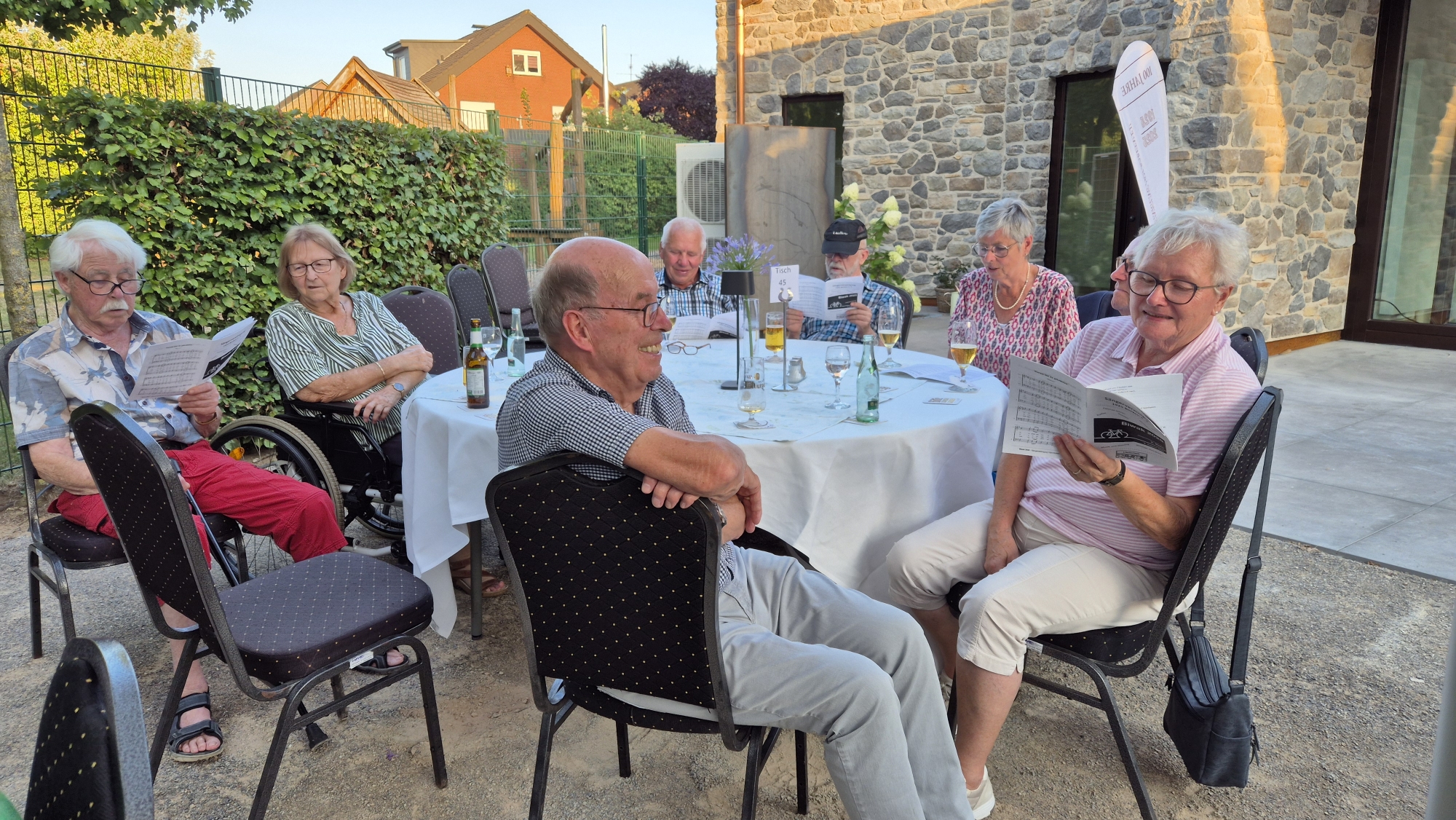Nach dem halbstündigen Kurzauftritt freuten sich die Heimbewohner auf das anstehende Mittagessen, wir dagegen auf das Kaltgetränk, das vom Heim im Schatten des Haupteinganges für uns bereitstand. Nach der kleinen Erfrischung und etwas „Smalltalk“ begaben sich Sänger und Chorleiter wohl mit einem zufriedenen Gefühl an ihren heimatlichen Mittagstisch.