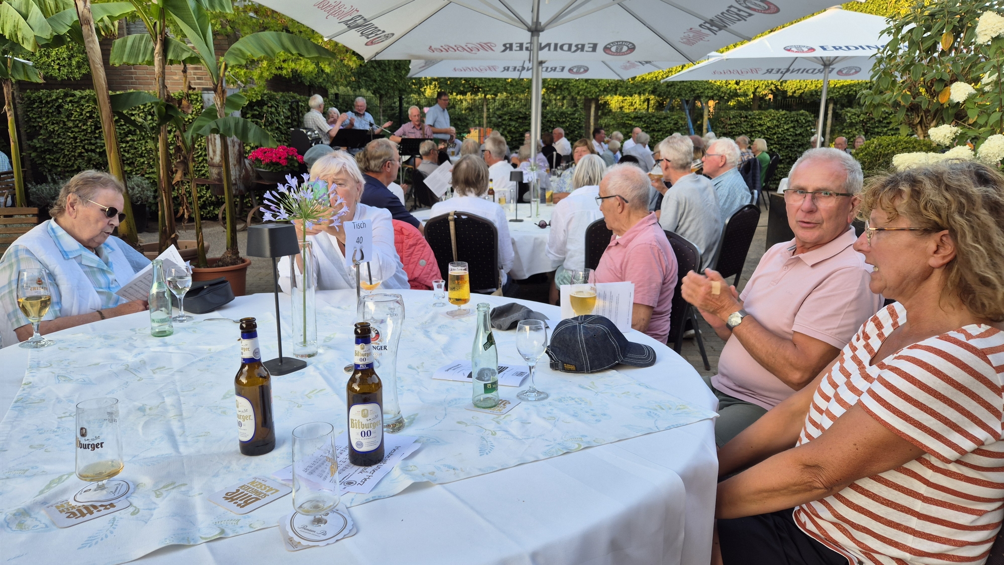 Die Freude war groß, als Hans Zakzek den Abend eröffnete und bekannt gab, dass das Abendessen in üblich guter Fliederbusch-Qualität und darüber hinaus noch 10 € pro Person auf Kosten der Vereinskasse ging. Nur die Getränke wurden aus eigener Tasche bezahlt. Es bleibt jedermanns Geheimnis, wieviel am Ende jeder tatsächlich zu bezahlten hatte; Guthaben wurden jedenfalls nicht ausgezahlt!