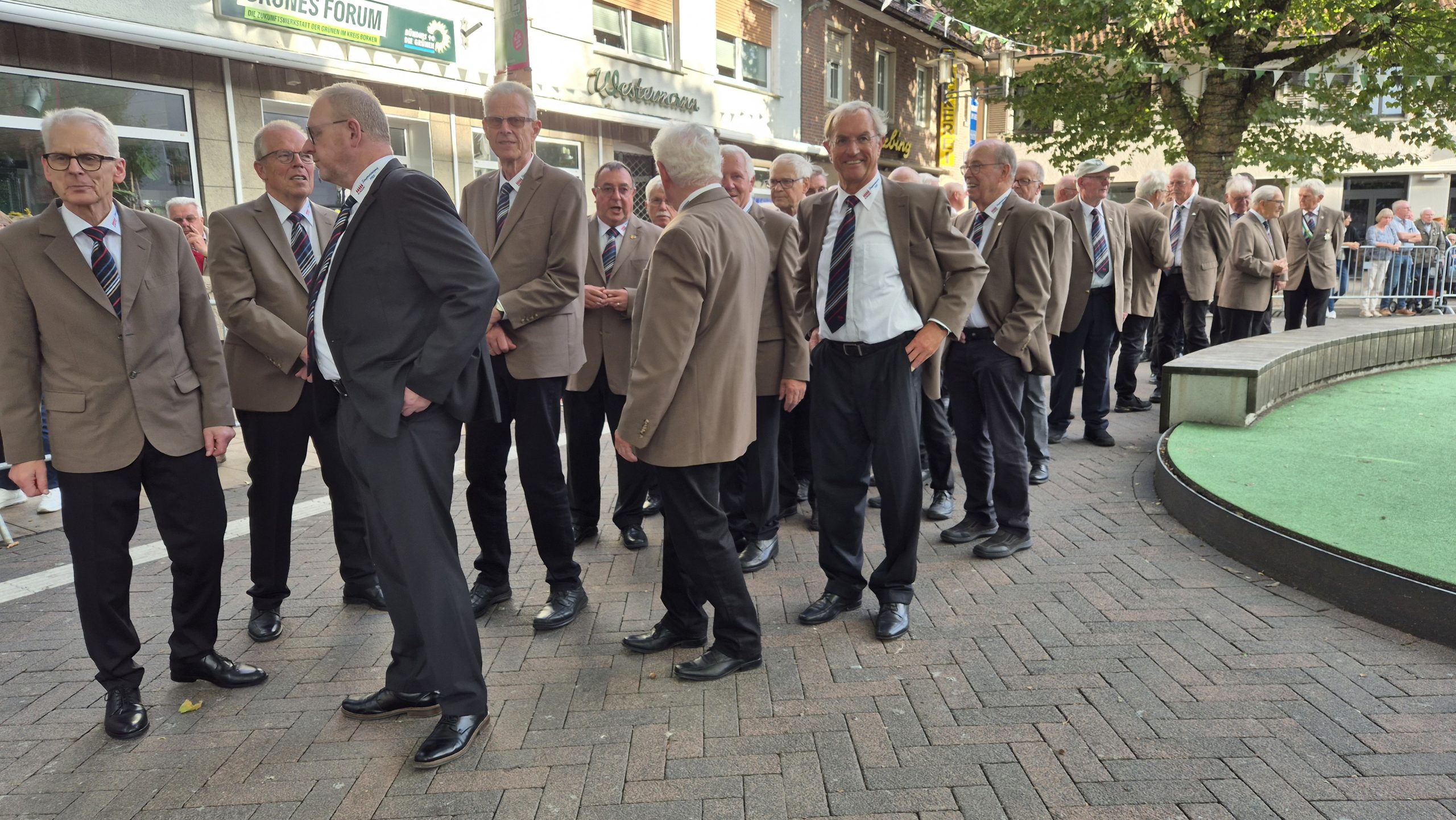 Auch im Jahr unseres 100-jährigen Bestehens beteiligte sich die Sängervereinigung 1925 Borken e.V. wieder musikalisch am Festgottesdienst des St. Johanni-Bürgerschützenvereins Borken e.V. am Samstag, 30.8.25, in St. Remigius, beim Antreten auf dem Marktplatz sowie beim Totengedenken und der Kranzniederlegung am Ehrenmal im Stadtpark.