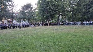 Im Anschluss an den Gottesdienst ging es dann schnurstracks zum Marktplatz. 18.45 Uhr  Antreten auf dem Marktplatz um 18:45 Uhr und Aufstellung wie immer an der so genannten Schafswiese.